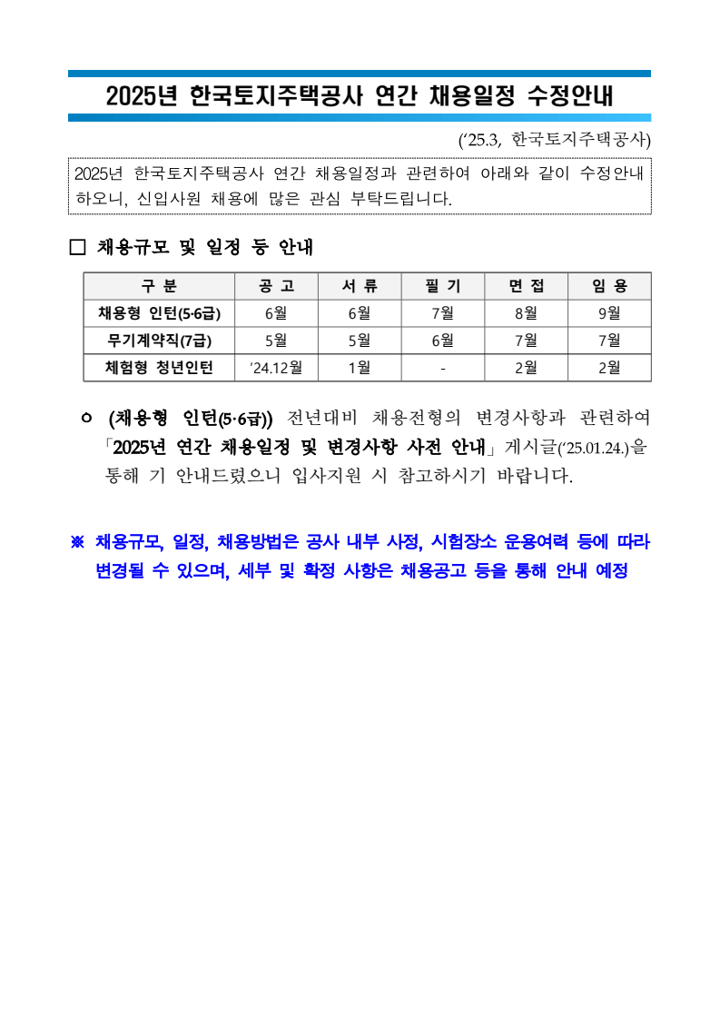 카테고리 없음 한국토지주택공사 채용일정 수정안내 by okfreelife 2025. 4. 29. 토지주택공사 채용일정 수정안내 일정변경 안내 공유하기 게시글 관리 okfreelife 님의 블로그