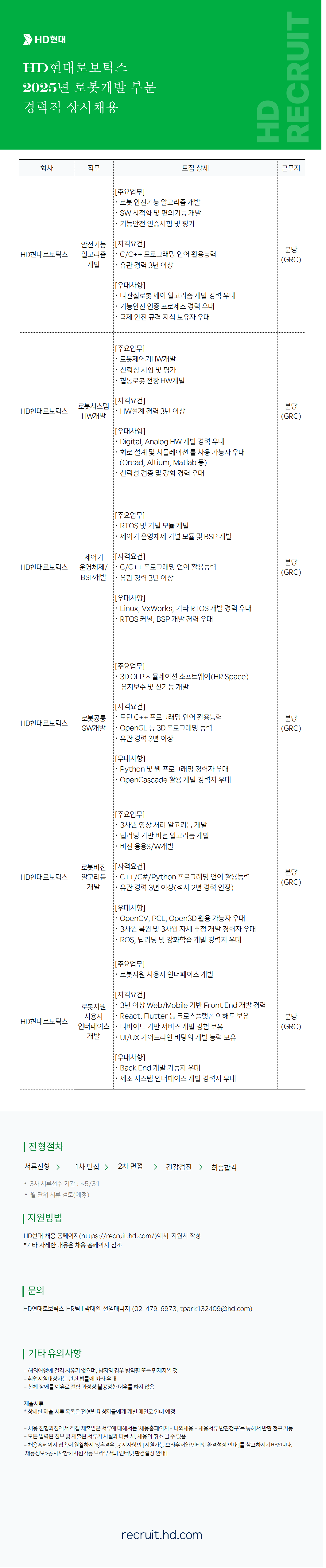 2025년 로봇개발 부문 경력직 상시채용