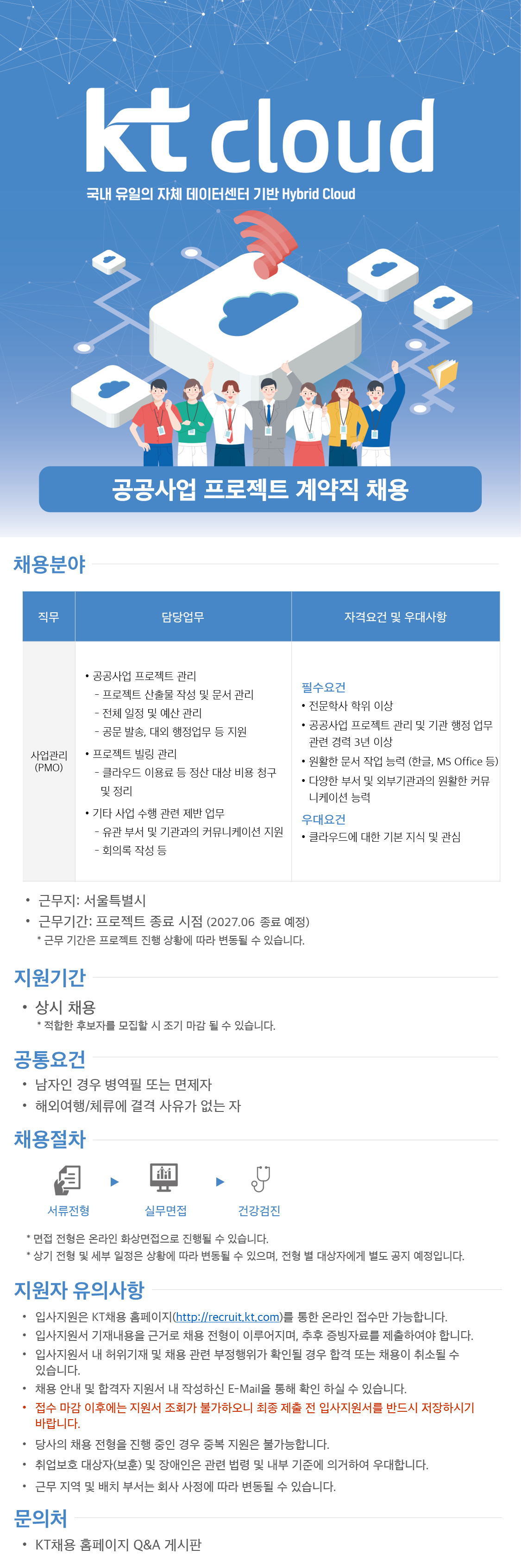 [kt cloud] 공공사업 프로젝트 계약직 채용